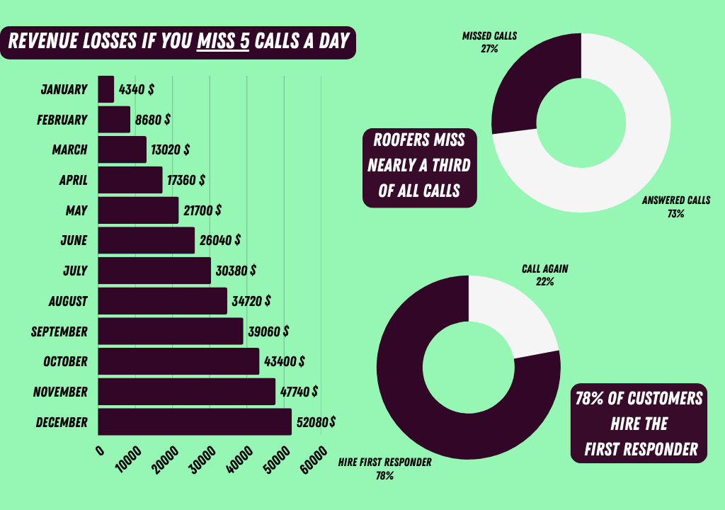 - Customers choose whoever answers first. Research shows 78 % of customers hire the first company that responds (ringeden.com). If your competitor picks up while you’re on a roof, you lose the job.